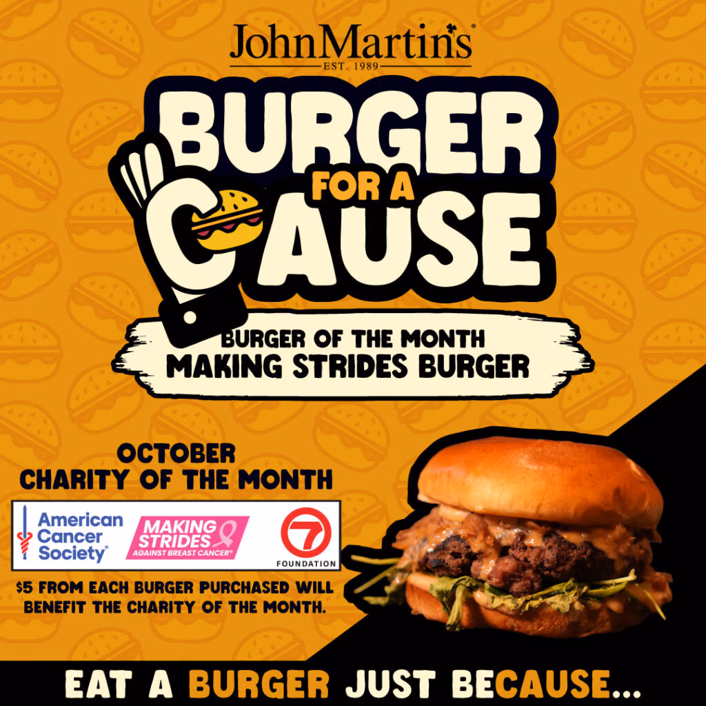 At JohnMartin’s, we believe in advocacy, building community, and giving back to the charitable organizations that serve South Florida. That’s why we launched “Burger For A Cause”, a monthly rotating Charity Burger where $5 from every burger sold is donated directly to a featured local nonprofit.